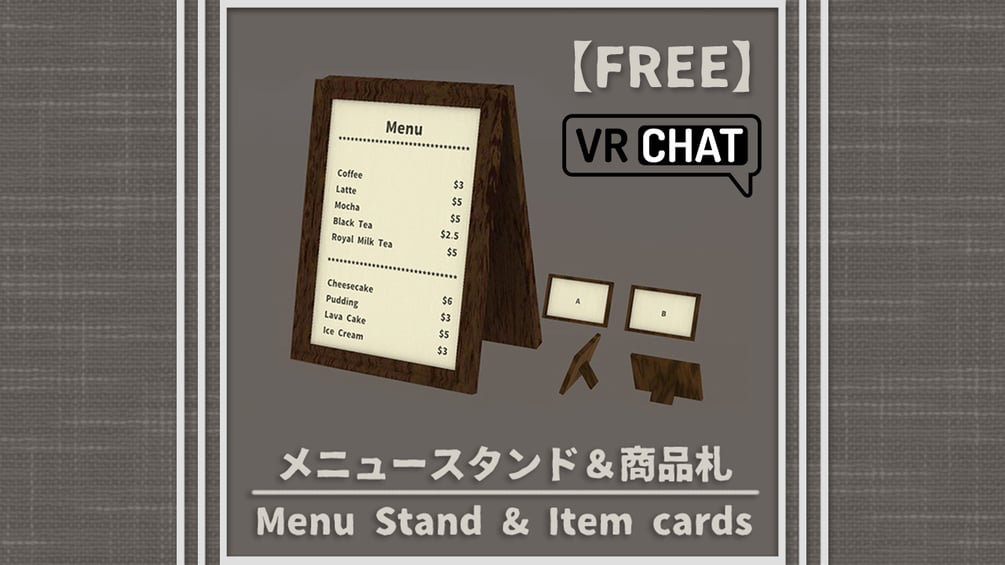 【 Free】Wooden Cafe Menu Stand and Item Cards【 VRChat Ready 】